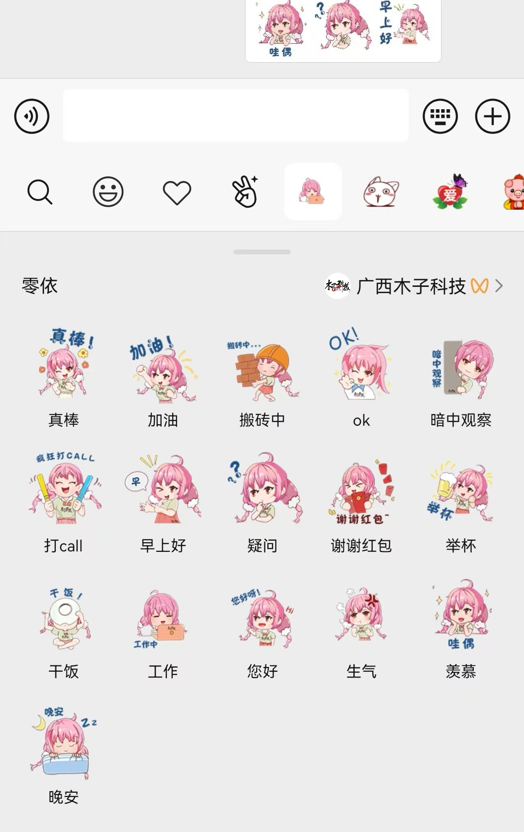 以下是廣西木子科技的微信表情包,可以在微信表情中搜索“零依”即可以找到。