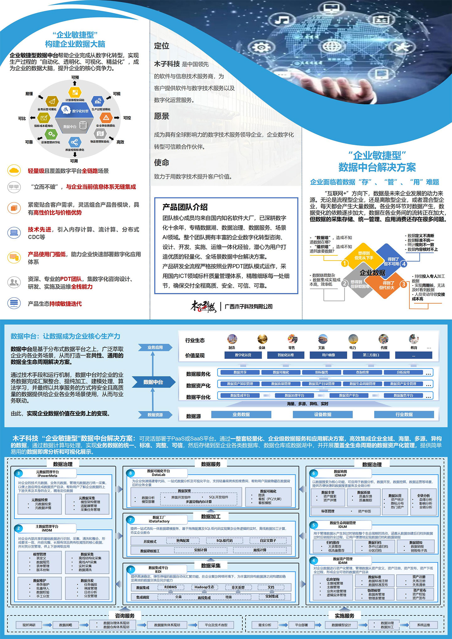 企業(yè)敏捷型數(shù)據(jù)中臺幫助企業(yè)完成數(shù)字化轉(zhuǎn)型,實現(xiàn)生產(chǎn)過程的“自動化、透明化、可視化、精益化”,成為企業(yè)的數(shù)據(jù)大腦,提升企業(yè)的核心競爭力。