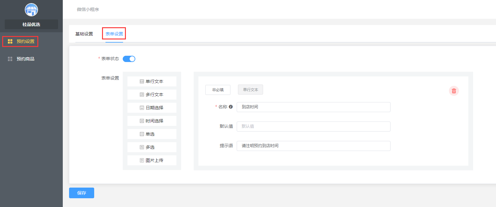小程序商城-預(yù)約設(shè)置-表單設(shè)置