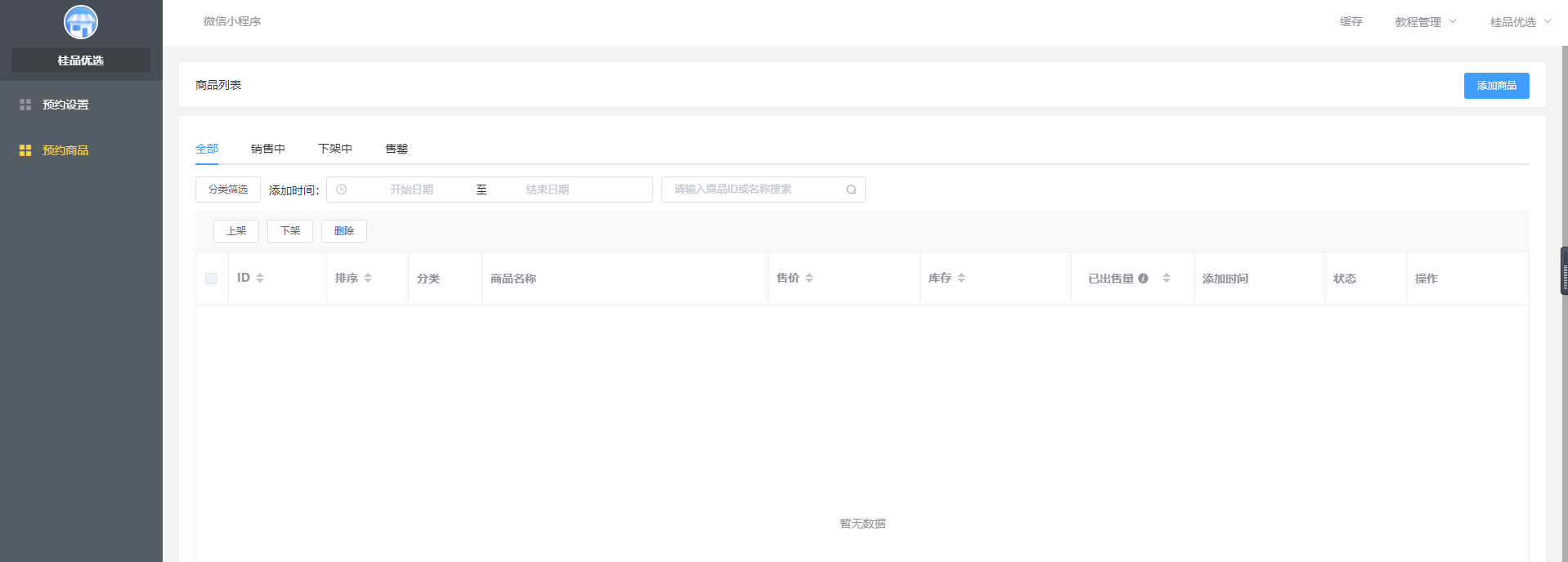 預(yù)約模塊中分有兩個(gè)模塊:預(yù)約設(shè)置和預(yù)約商品。