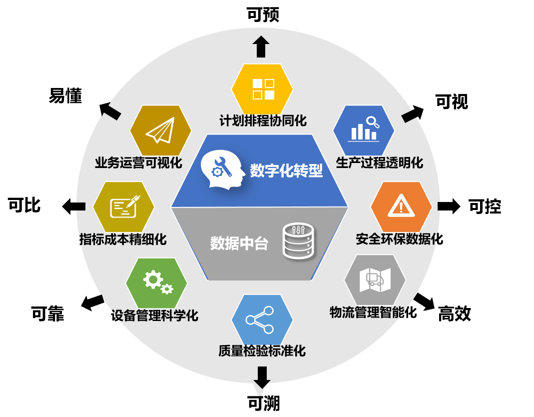 企業(yè)敏捷型數(shù)據(jù)中臺幫助企業(yè)完成數(shù)字化轉型,實現(xiàn)生產(chǎn)過程的“自動化、透明化、可視化、精益化”,成為企業(yè)的數(shù)據(jù)大腦,提升企業(yè)的核心競爭力。